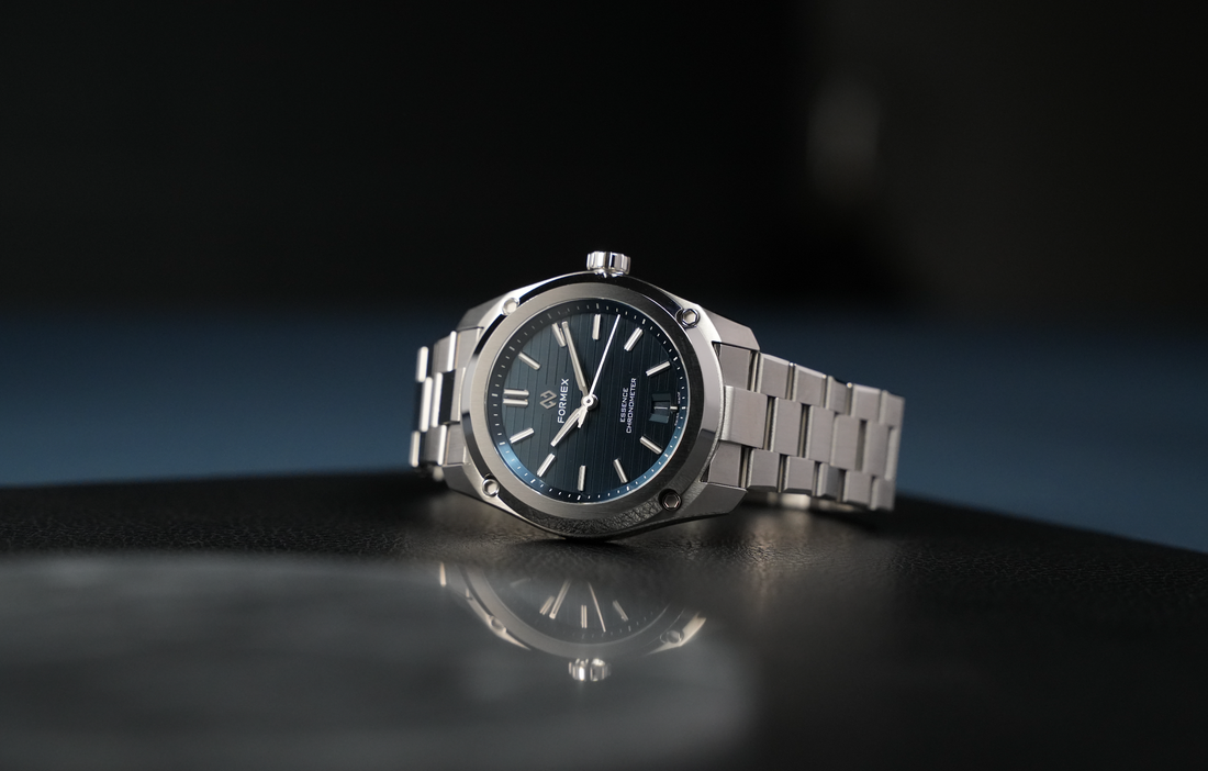 Formex ESSENCE 系列,作為精緻與簡約風格的完美結合,除了有著瑞士天文台的認證,每款手錶更展現著高度品味的設計與精湛的工藝,成為時尚與功能的極致體現。錶殼和錶圈拋光與拉絲的打磨處理,帶來柔和觸感和奢華質感,手工拋光斜角設計增添光滑細緻感。僅 10 毫米的厚度使佩戴更加舒適,完美貼合手腕。而「專利避震系統」則保護機芯免受外部震動的影響,增進運行的精準與配戴的舒適度。這種創新技術的融入,使 ESSENCE 系列成為輕奢運動鋼錶中的翹楚,展現出與眾不同的魅力與品質。無論是日常穿搭還是商務場合,ESSENCE 系列都是您展現品味與風格的最佳選擇,為您的每一刻增添精彩與自信。